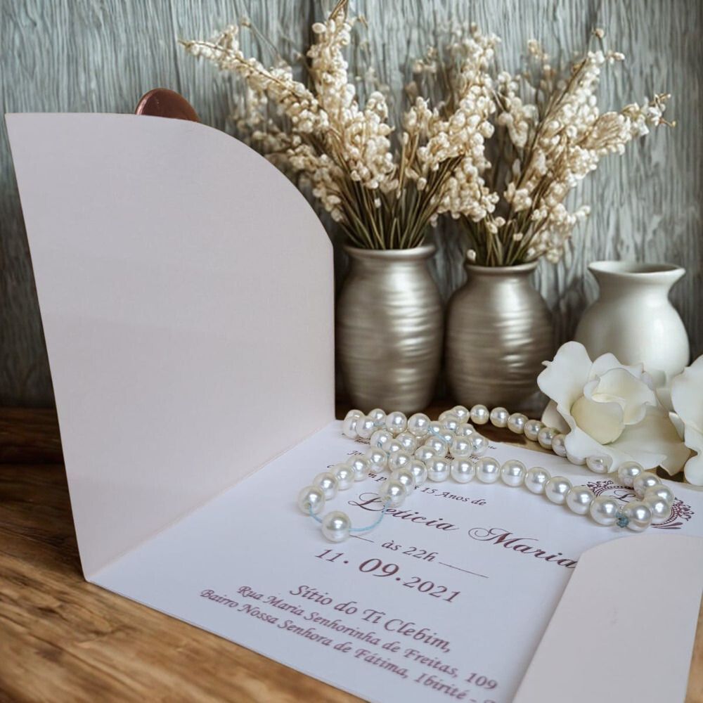 Os convites de 15 anos são um marco na vida de qualquer debutante. Por isso, desenvolvemos modelos exclusivos que traduzem a personalidade da aniversariante, desde os mais clássicos até os mais modernos, com acabamentos sofisticados, como lacres de cera, cortes diferenciados e papéis especiais. Cada convite de 15 anos é feito para encantar e surpreender os convidados.