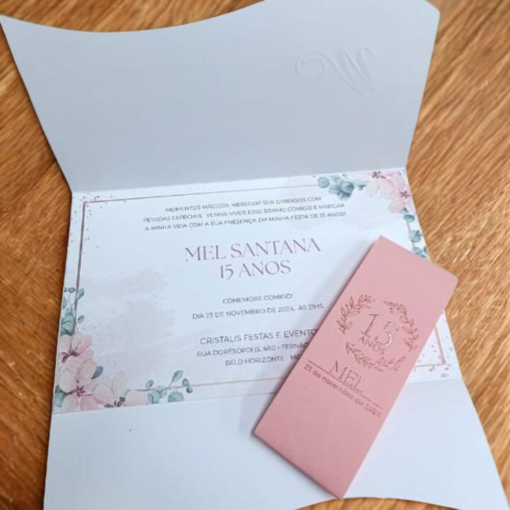 O mundo dos convites vai muito além dos convites de 15 anos. É possível encontrar modelos igualmente especiais para casamento, aniversário infantil, bodas de prata e bodas de ouro. Cada celebração pede um estilo diferente, mas todas têm algo em comum: o desejo de convidar com elegância e deixar os convidados encantados desde o primeiro momento.