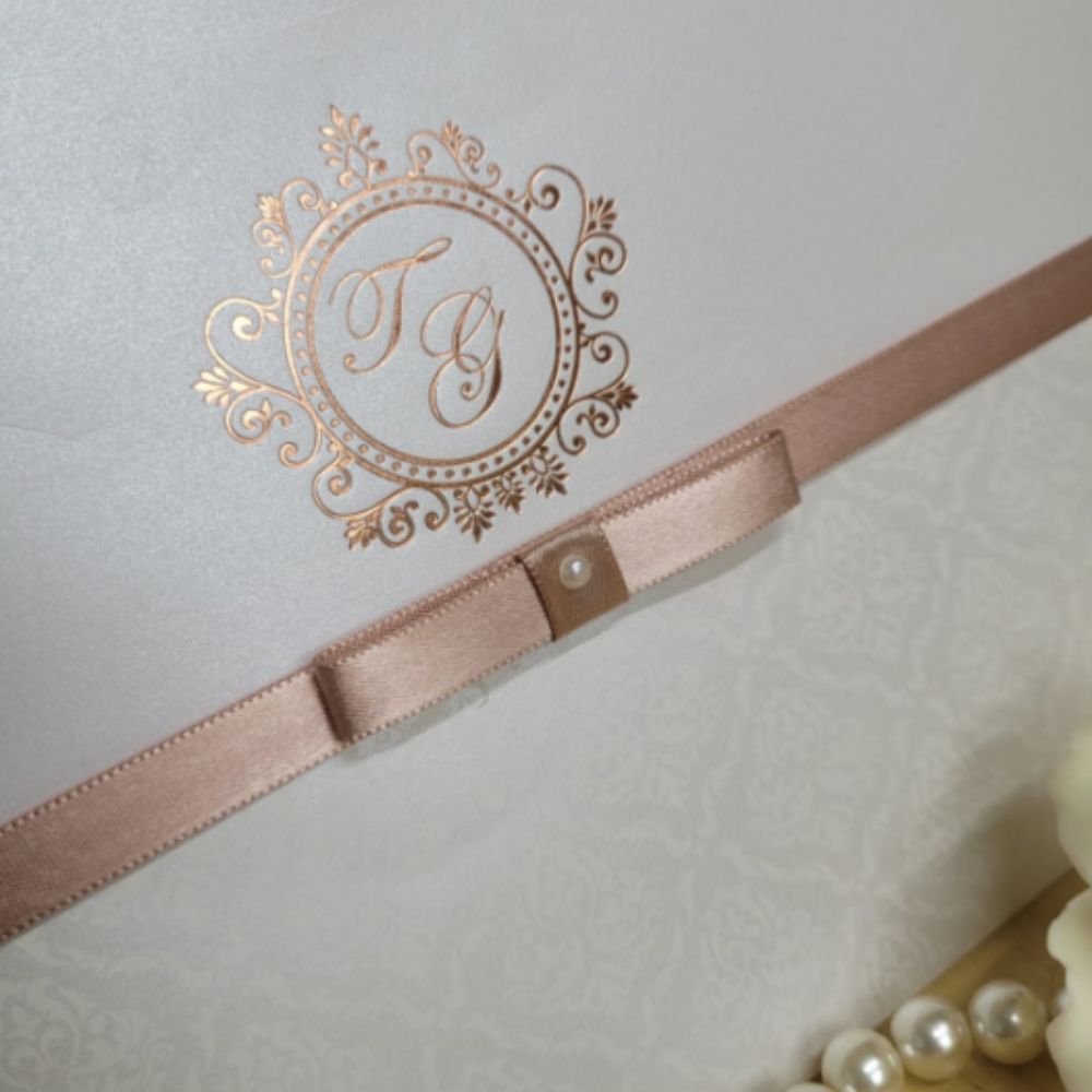 Papel miolo: Aspem 180 grs com relevo americano e hot no nome dos noivos