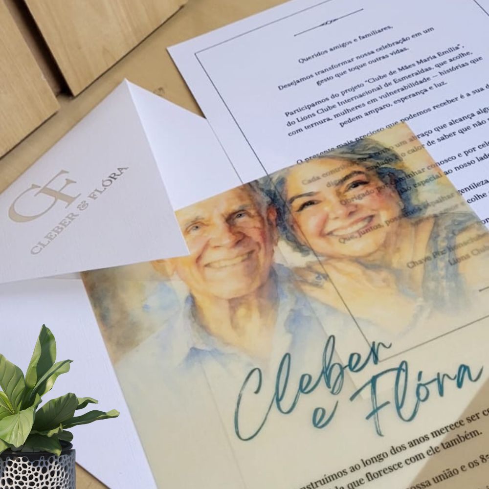 Seu sucesso se deve à sua capacidade de transmitir elegância sem exageros. Ao mesmo tempo moderno e atemporal, o convite verde oliva agrada diferentes estilos de casais e anfitriões. Ele pode ser usado tanto em formatos tradicionais em papel quanto em modelos mais inovadores como o convite em acrílico, que oferece um toque extra de sofisticação.